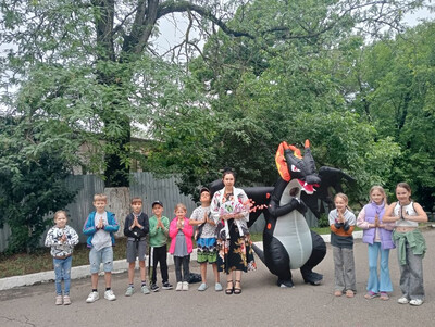 Библиотекарь, в традиционной китайской одежде, и ростовая кукла Огненный дракон встретили детей на свежем воздухе, где в игровой форме познакомили ребят с культурой, традициями, национальными символами Китая. Продолжилось мероприятие в библиотеке, где прошел интерактив с перевоплощением. Фотосессия с переодеванием девочек в китайских красавиц в кимоно, с веером и с импровизированной прической на голове с заколками-палочками. Мальчики примеряли на себя маски очаровательных обитателей бамбуковых рощ - панд, рассматривали живые ветки бамбука. Все участники с головой окунулись в мир панд, узнав об их уникальной среде обитания, особенностях поведения и рационе. Затем ребята тянули наугад карточки с позами мастеров оздоровительной боевой техники – ушу и старались повторить причудливые стойки.