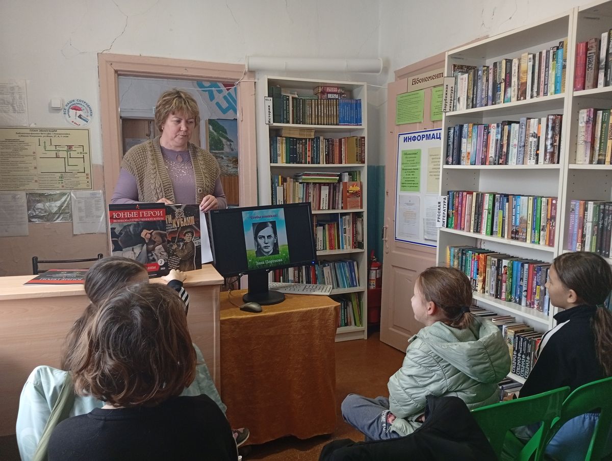 15 февраля в сельской библиотеке-филиале №14 прошёл час мужества, посвящённый 100-летию со дня рождения Зины Портновой — юной героини, чьё имя навсегда вписано в историю Великой Отечественной войны.