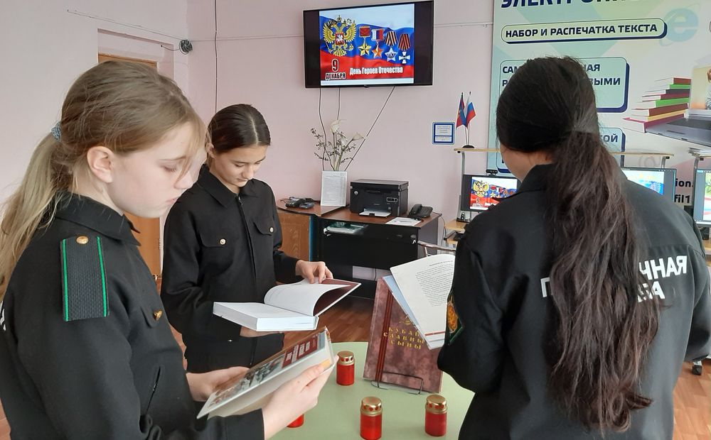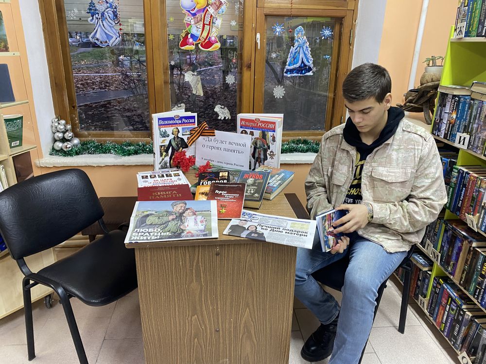 В этот день в сельской библиотеке-филиале №17 прошел урок мужества «Гордимся славою героев!». Присутствующие на мероприятии познакомились с историей этой значимой праздничной даты, с тем, кто такой Святой Георгий Победоносец и почему в честь него учреждены высшие награды для воинов, что такое героический поступок и за какие подвиги присваивается звание Герой Отечества. Разговор шел о том, что во все времена наш народ защищал свою землю, о героях разных эпох Великой России, о героях современной России, тех, кто сражается за наше счастливое будущее и мирное небо над головой, также вспомнили о наших земляках, участвующих в СВО.