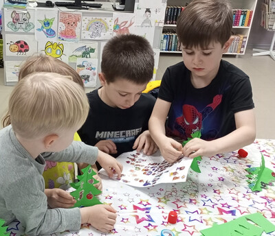 А 21 декабря в библиотеке села Кирилловка для маленьких читателей библиотеке прошел мастер-класс «В Новый год мы не скучаем-лепим, клеим, вырезаем!».
