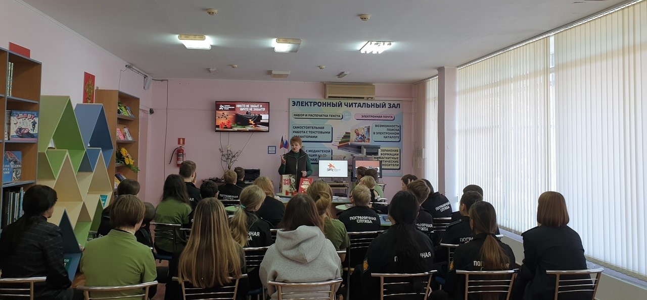 Участники поговорили о значении этого дня в истории страны и о важности преемственности памяти поколений. Также вспомнили памятники Неизвестному солдату, были продемонстрированы книги, воспевающие подвиг народа в Великой Отечественной войне.
