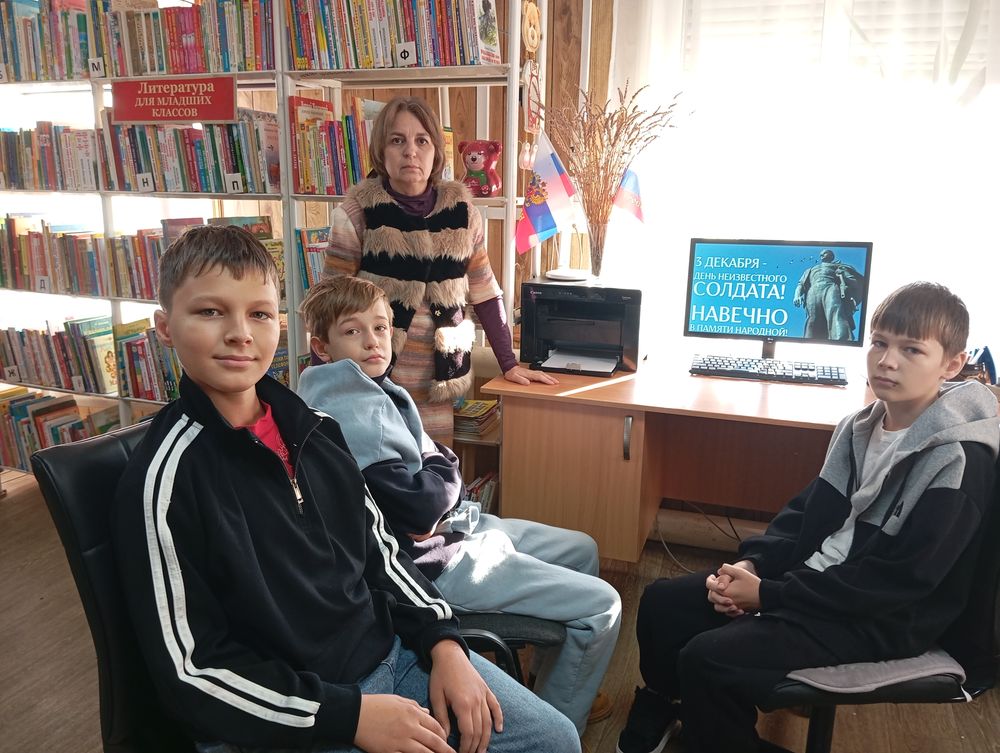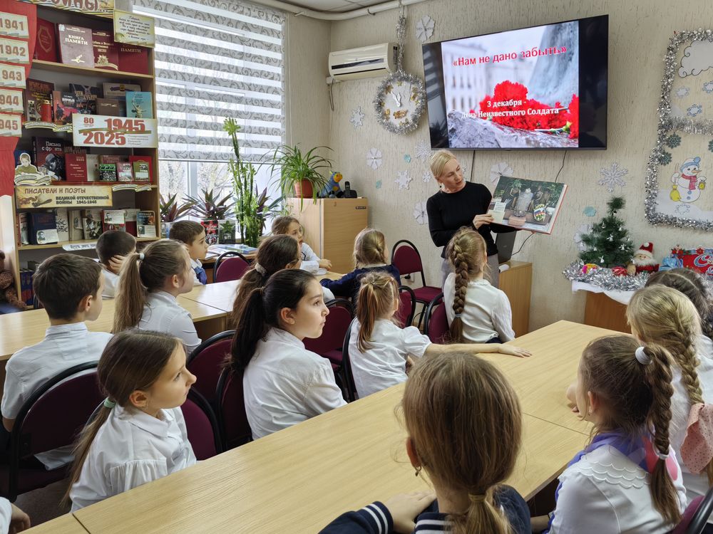 В библиотеке-филиале №4 им. А.С. Пушкина состоялась беседа «Нет имени – есть звание солдат», посвященная Дню Неизвестного Солдата. Участниками стали учащиеся МАОУ СОШ №33. Мероприятие было призвано напомнить молодому поколению о цене Великой Победы и о тех, кто навсегда остался безымянным героем.