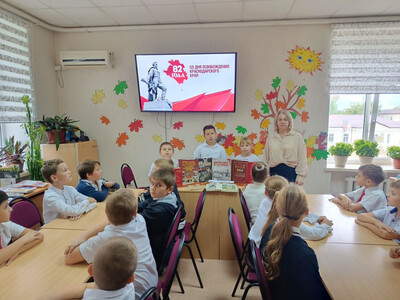 Ребятам были представлены книги, имеющиеся в фонде библиотеки, рассказывающие о стойкости защитников Новороссийска, о юных патриотах Кубани, героях Великой Отечественной войны, сражавшихся наравне со взрослыми, часто с оружием в руках, с немецкими оккупантами.