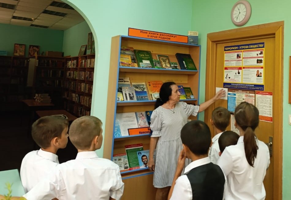 К дню солидарности в борьбе с терроризмом 3 сентября сотрудники Раевской сельской библиотеки с учащимися 6 «А» класса МБОУ СОШ №24 им. генерала Н.Н. Раевского провела информационный час «У террора нет национальности».
