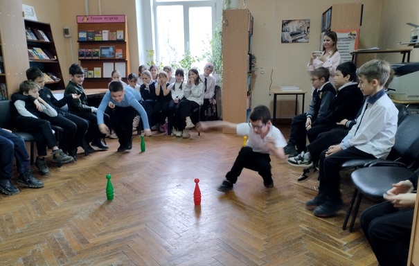 20 февраля сотрудник библиотеки-филиала № 5 им. В. Вишневского провела для учащихся 7 «Б» класса средней школы №12» игровую программу «Солдатская смекалка».