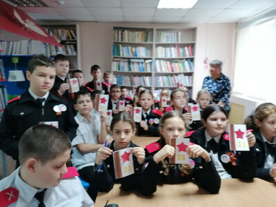 В завершение месячника военно-патриотического воспитания, ко Дню Защитника отечества сотрудники библиотеки хутора Семигорского провели с учениками 4 класса школы №25 мастер-класс «Поздравительная открытка для участников СВО».