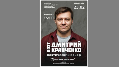 Приглашаем на поэтический вечер с Дмитрием Кравченко, где будут звучать стихи о Великой Отечественной войне.