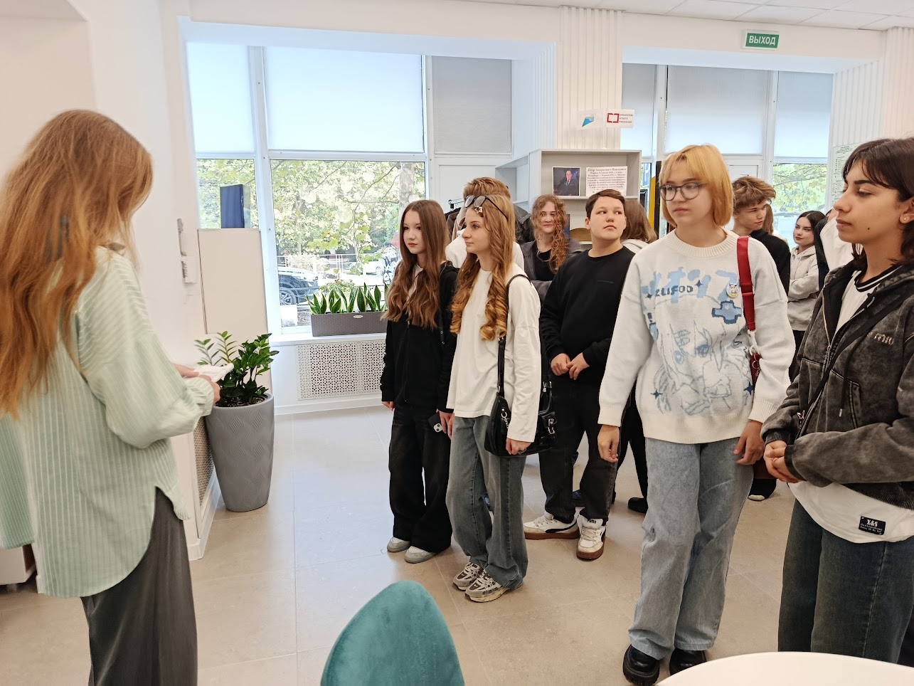 25 октября в гости пришли восьмиклассники школы № 40, чтобы заглянуть в мир библиотеки без занавеса и увидеть, чем она живёт сегодня. С первой минуты - живой интерес. Взгляд притягивали обновлённые фонды: свежие поступления, широкая линейка молодежной литературы на любой вкус, аккуратно и величаво стоящие полки, которые так и манят выбрать «ту самую» книгу. Отдельные комплименты современному интерьеру: светло, удобно, хочется оставаться дольше и прочитать ещё одну страницу.