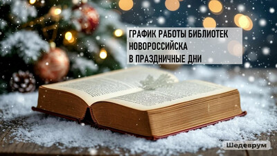 | Центральная городская библиотека им. Баллиона | 30.12.25 с 10 - 00 до 19-00 31.12.25 выходной 01.01.26 выходной 02.01.26 выходной 03.01.26 с 10-00 до 17-00 04.01.26 с 10-00 до 17-00 05.01.26 с 10-00 до 17-00 06.01.26 с 10-00 до 17-00 07.01.26 выходной 08.01.26 с 10-00 до 17-00 09.01.26 с 10-00 до 17-00 10.01.26 с 10-00 до 18-00 11.01.26 с 10-00 до 18-00 |