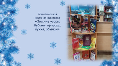 В отделе Краеведения открыта тематическая книжная выставка «Зимние узоры Кубани: природа, кухня, обычаи», посвящённая самому сказочному времени – Новому году, Рождеству, Святкам.