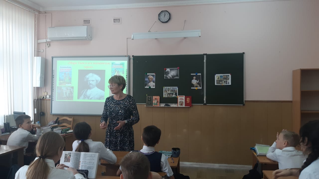 18 ноября, Городская библиотека-филиал № 10 провела литературный час в 5 классе средней школы №28 «Марк Твен и его знаменитые герои».