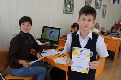 После того, как все присутствующие дали свои варианты ответов на предложенные вопросы, началась торжественная церемония вручения сертификатов участника диктанта. А результаты диктанта будут объявлены 2 октября на официальном сайте Баллионовской библиотеки.