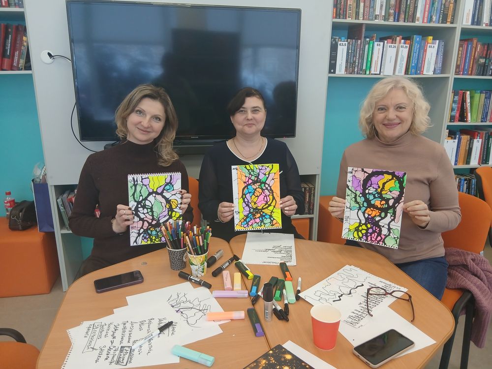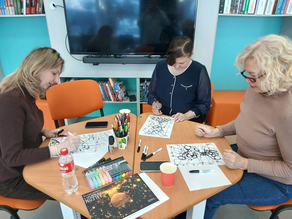Открытый мастер-класс по нейрографике в библиотеке им. П. А. Павленко 17 января превратил обычный выходной в тихое путешествие внутрь себя. Маркеры шуршат по бумаге, линии то расходятся, то встречаются, мягко переплетаясь — и в этом ритме неожиданно выравнивается дыхание, проясняются мысли, собирается фокус на своих целях.
