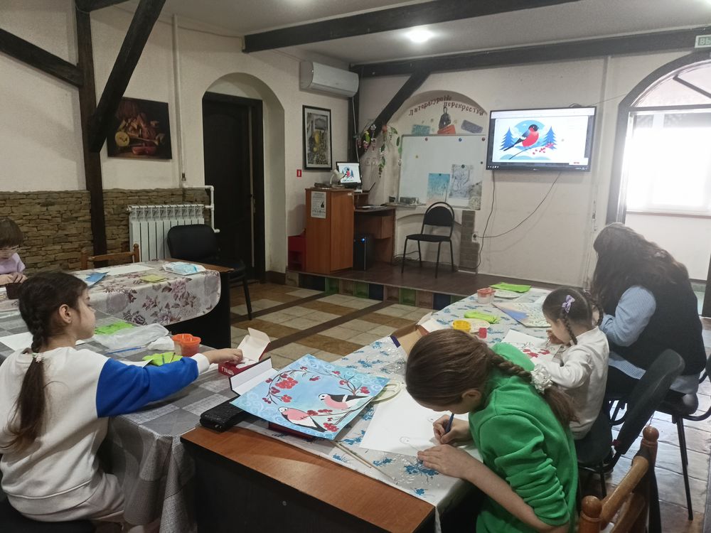17 января в библиотеке прошел мастер класс «Зимние пейзажи». Ребята рисовали не просто спокойствие зимы ее холодность и чистоту, нет они увидели яркость и контрастность и конечно сказку. Рисовали горные пейзажи и как не удивительно, снегирей – ярких птичек на фоне белого снега. Изучали перспективу, сочетание красок умение быстро работать с краской и видеть красоту в мелочах.
