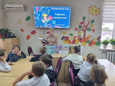 Библиотекарь объяснила значения слов: профессия, специальность, разъяснила, где можно получить рабочую профессию, ведь современный труд рабочего требует от человека множества знаний, без которых управлять сложными механизмами и машинами, работать у станков просто невозможно. Затем, в игровой форме, сопровождающейся чтением стихотворений, познакомились с некоторыми профессиями поближе, поучаствовали в интерактивной познавательной игре «Рабочие профессии», которая помогла узнать ребятам интересные факты из мира профессий. В завершении беседы провели конкурсные задания на собирание пословиц и отгадывание загадок о труде и профессиях.