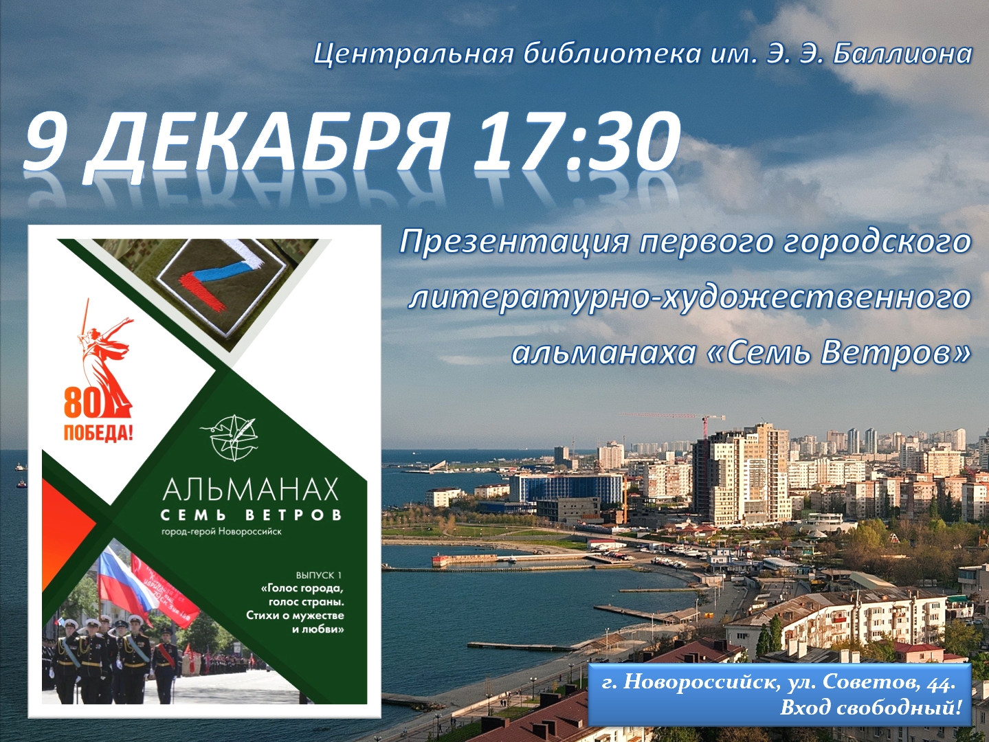В 17:30 состоится торжественная презентация первого городского литературно-художественного альманаха «Семь Ветров».