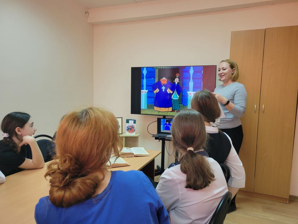 Центральным событием встречи стало обсуждение знаменитой сказки «Повесть о том, как один мужик двух генералов прокормил». Ребята получили задание прочитать её заранее — и справились блестяще! Они дружно отвечали на вопросы литературной викторины, делились своими впечатлениями и рассуждали о поступках героев.