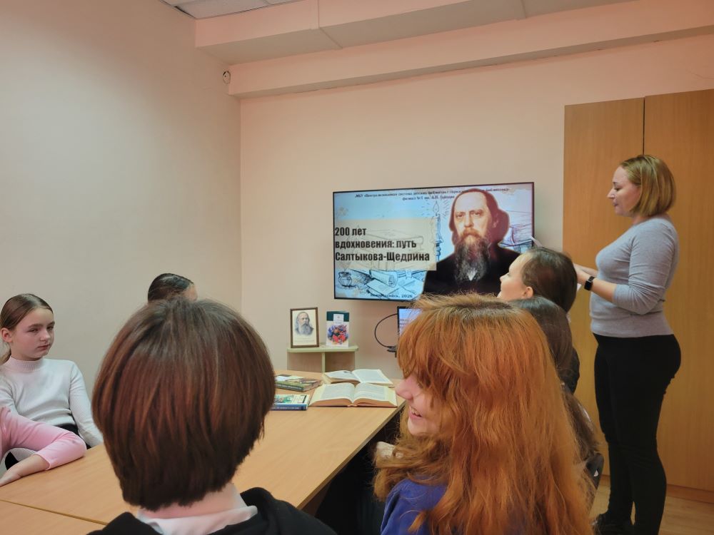 Библиотекарь подготовила для ребят увлекательное путешествие в жизнь и творчество писателя. С помощью яркой презентации и познавательного видеоролика дети узнали о том, как формировался талант великого сатирика, что вдохновляло его на создание бессмертных произведений. Особое внимание уделили сказкам — мудрым, ироничным, полным глубокого смысла. Именно в них Салтыков-Щедрин с беспощадной правдивостью обличал человеческие пороки: зло, лицемерие, тупость, невежество и лень.