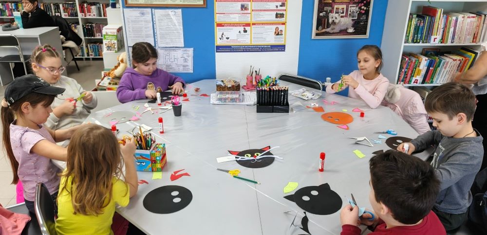 Но встреча была не только познавательной, но и творческой.Вдохновленные стихами, дети взяли цветную бумагу, клей и создали своих собственных котят — таких же озорных, забавных и трогательных, как в книжке. Каждый котик получился особенным, ведь в него вложили частичку души и фантазии.