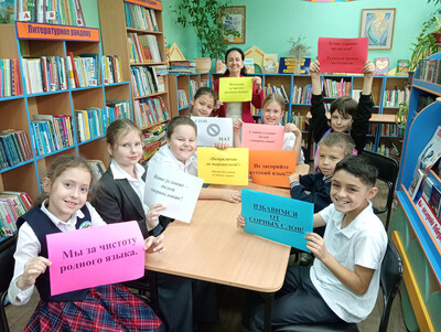 После обсуждения данной темы, присутствующие сделали общее фото с слоганами за чистоту родной речи.