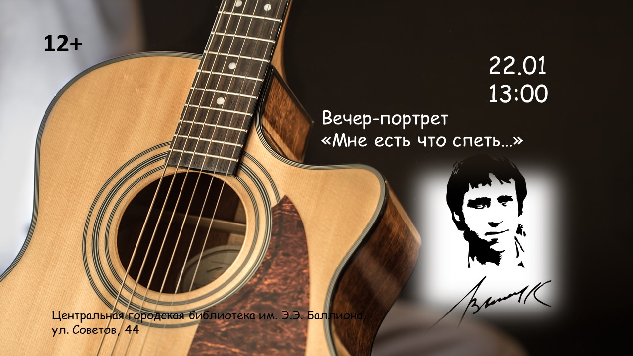 В Баллионовской библиотеке в рамках заседания объединения старожилов и хранителей истории «ИСТОКИ», состоится мероприятие, посвящённое выдающемуся поэту и актёру.