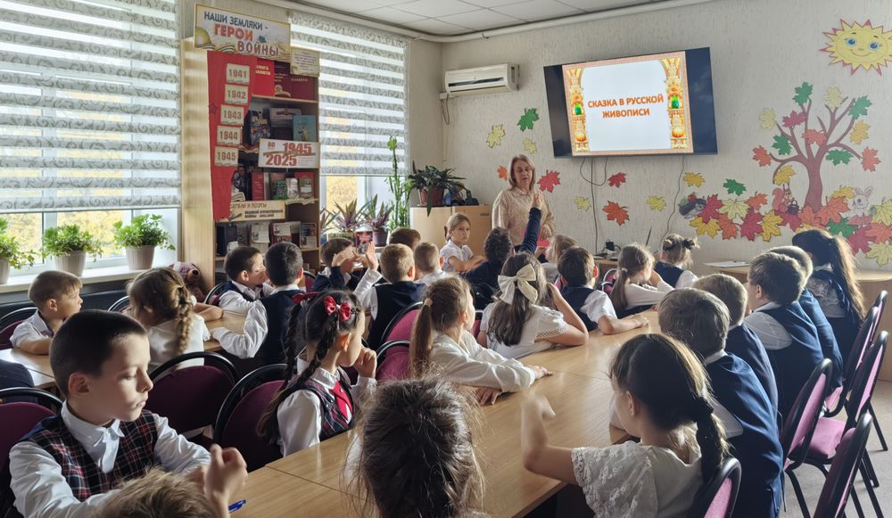 24 октября в сельской библиотеке-филиале №17 был проведен час искусства «Сказка в русской живописи». Из рассказа библиотекаря школьники узнали о жизни и творчестве замечательных художников-иллюстраторов Виктора Васнецова, Михаила Врубеля и Ивана Билибина, которые создали неповторимые образы сказочных персонажей русских народных и литературных сказок. В ходе мероприятия ребята с удовольствием рассматривали книги с иллюстрациями художников, участвовали в викторине, называя сказку и ее автора по иллюстрациям к книгам. Познакомили с самыми знаменитыми картинами, выражающие дух и красоту русской сказки, ими стали шедевры художников. Рассказ дополнялся интересной презентацией, посвященной русским художникам и их картинам. С помощью просмотра видеопрезентации ребята путешествовали по репродукциям картин «Алёнушка», «Иван Царевич на Сером волке», «Ковёр-самолёт», «Снегурочка», «Царевна-лебедь», созданные по мотивам русских народных и литературных сказок.