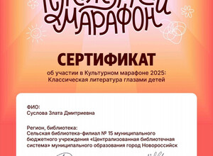 Награждается центральная городская библиотека им.Э.Э.Баллиона муниципального бюджетного учреждения "Централизованная библиотечная система" муниципального образования город Новороссийск. За участие в краевой библиотечной акции "Литературная память Победы" посвященной 75-летию освобождения Кубани от немецко фашистских захватчиков.